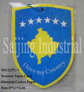 SJPC-1 scented car air freshener is made of scented cotton paper. It is of exquisite size and comes in various fragrances. With its delicate shape and design, the paper air freshener is an ideal decoration for your home, car, office, wardrobe and bedroom, etc. With its fresh fragrance, the paper car air freshener is helpful to musk the unpleasant odor and scent the air with aroma. In addition, the paper air freshener can be printed with your logo, so it is great for promotion and advertisement. And as a gift, paper car air freshener is also a fine choice.