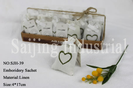 SJH-39 embroidery sachet adopts Chinese traditional handcrafts. Simple images such as heart image, flower image and other images can be printed on the body of such scented sachet bags. This makes the aromatic sachet bag elegant. Trend of back-to-ancient is becoming more and more popular, such traditional design and handcrafts make the embroidery sachet both traditional and stylish. Such scented sachet bags would be a great addition to your modern place. And the same time this aromatic sachet bag can help you scent the air with fresh and long lasting fragrance. And if you want to send presents to people you like or love, a set of embroidery sachet would be a perfect choice.